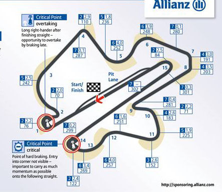 22. Rossi與Biaggi在通過圖中11號高速彎時的心跳頻率曾被評論員拿來比較兩人特質。Istanbul--Turkey